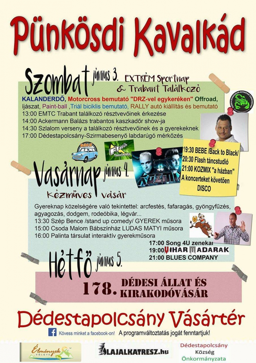 Dédestapolcsányban a Pünkösdi kavalkádon lépünk fel.
